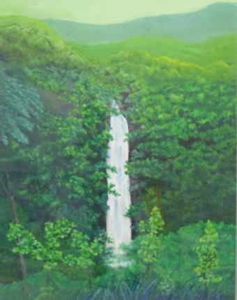 ![]() 池上 貢 「深緑に潜む大滝」 水彩 F50 |