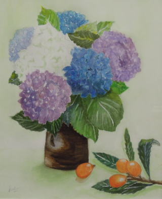 「あふれる紫陽花」 水彩 F8 2025年