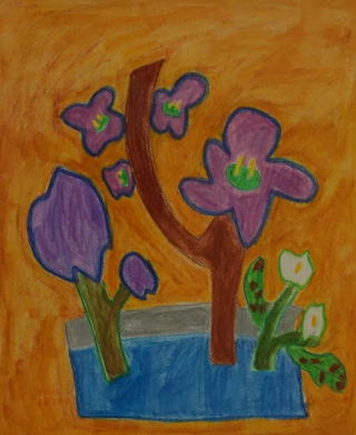 桃とストックとナズナ