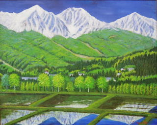 「白馬三山新緑」 油彩 F50 2023年