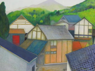 「狐の親子のいる春の野山」 油彩 50 2021年