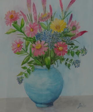 「花たちの語らい」 水彩 F8 2025年